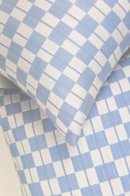 Sujani Pillow - Soft Blue Grey Checkered Pillow