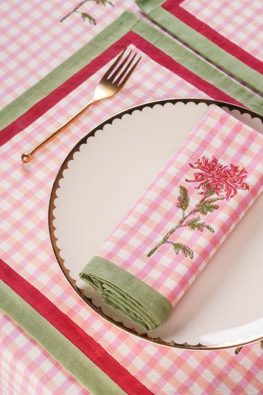 Dahlia Gingham Blockprint Napkins, Set of 4
