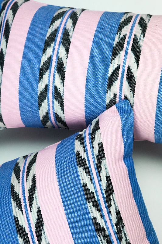 Abigail Plaid Square Pillow in Periwinkle and Pink