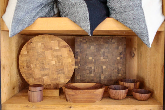 14" Cut Chop Square Cutting Board in Fumed Oak