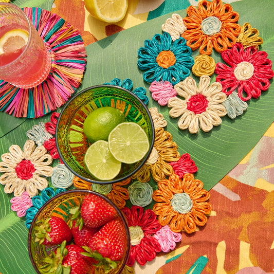 Pahiyas Woven Fringe Raffia Coasters Rainbow, Set of 4