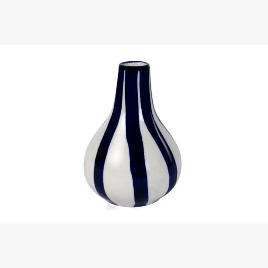 Ceramic Stripe bud vase, 3.5 x 3.5 x 4.75 Inches- Blue