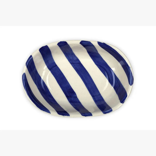 Ceramic stripe Bowl, Blue 7x5x2 Inches