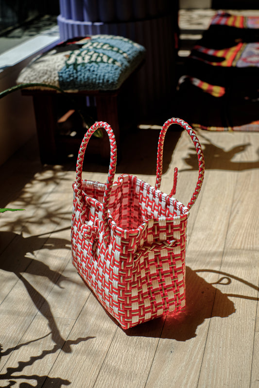 "Saigon Birkin" Recycled Plastic Bag in Red and White