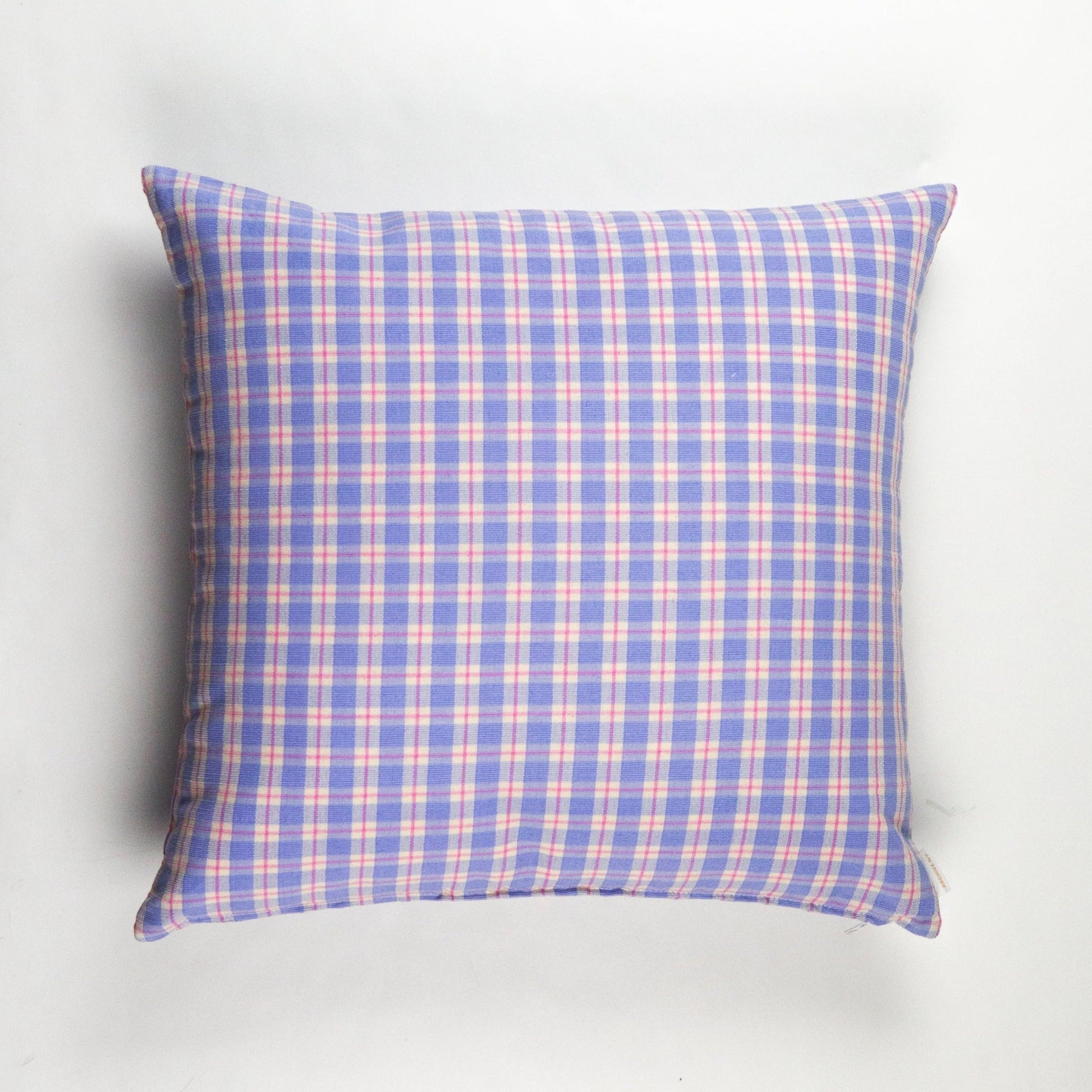 The Sofia plaid pillow is the perfect accent to add soft color and texture to any sofa, bedroom or accent chair. Stripes of periwinkle and pink are woven together to create this brilliantly colorful piece. Ethically handwoven by artisans in Xela, Guatemala.