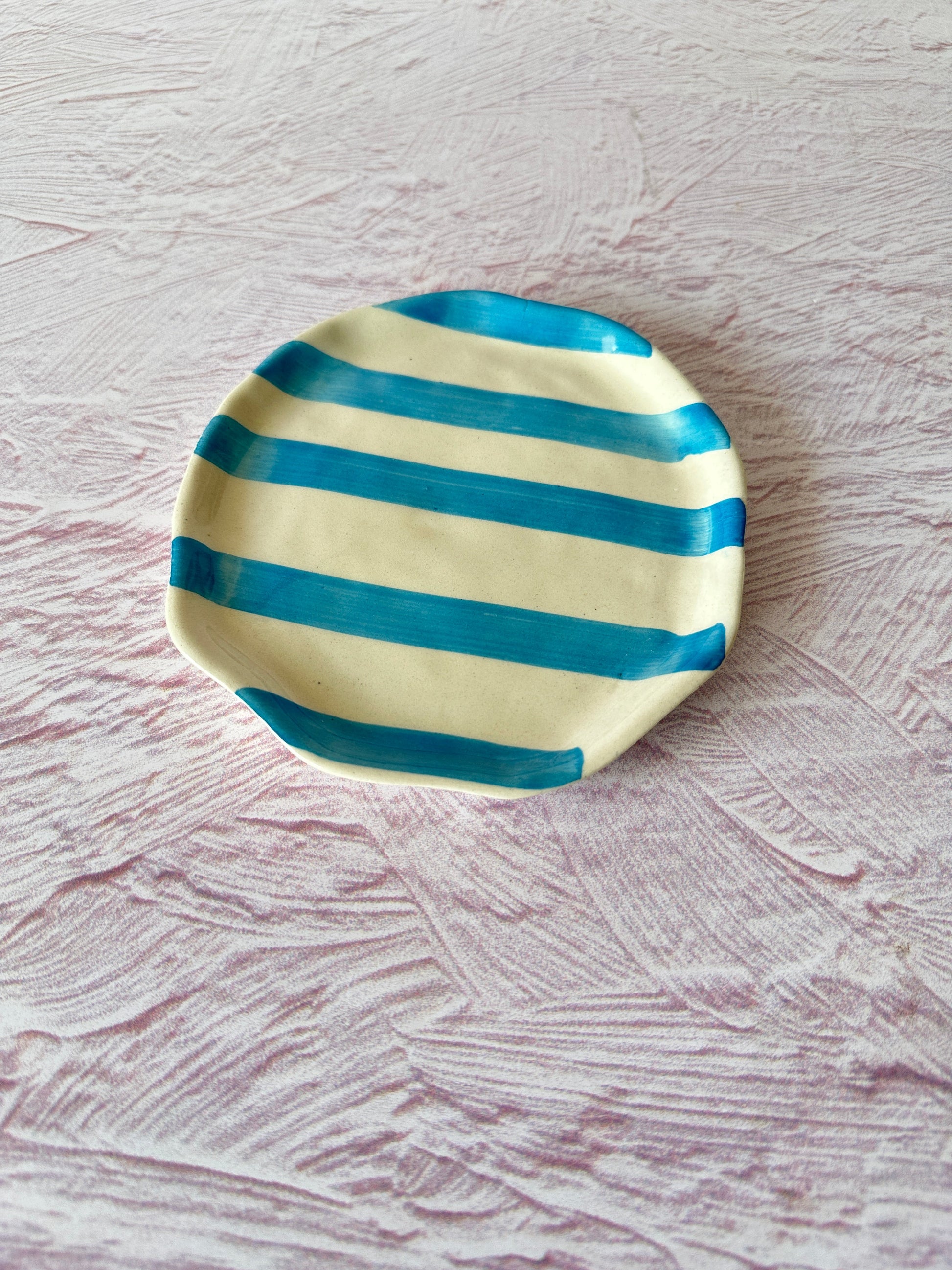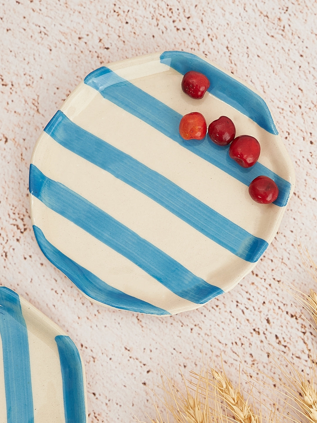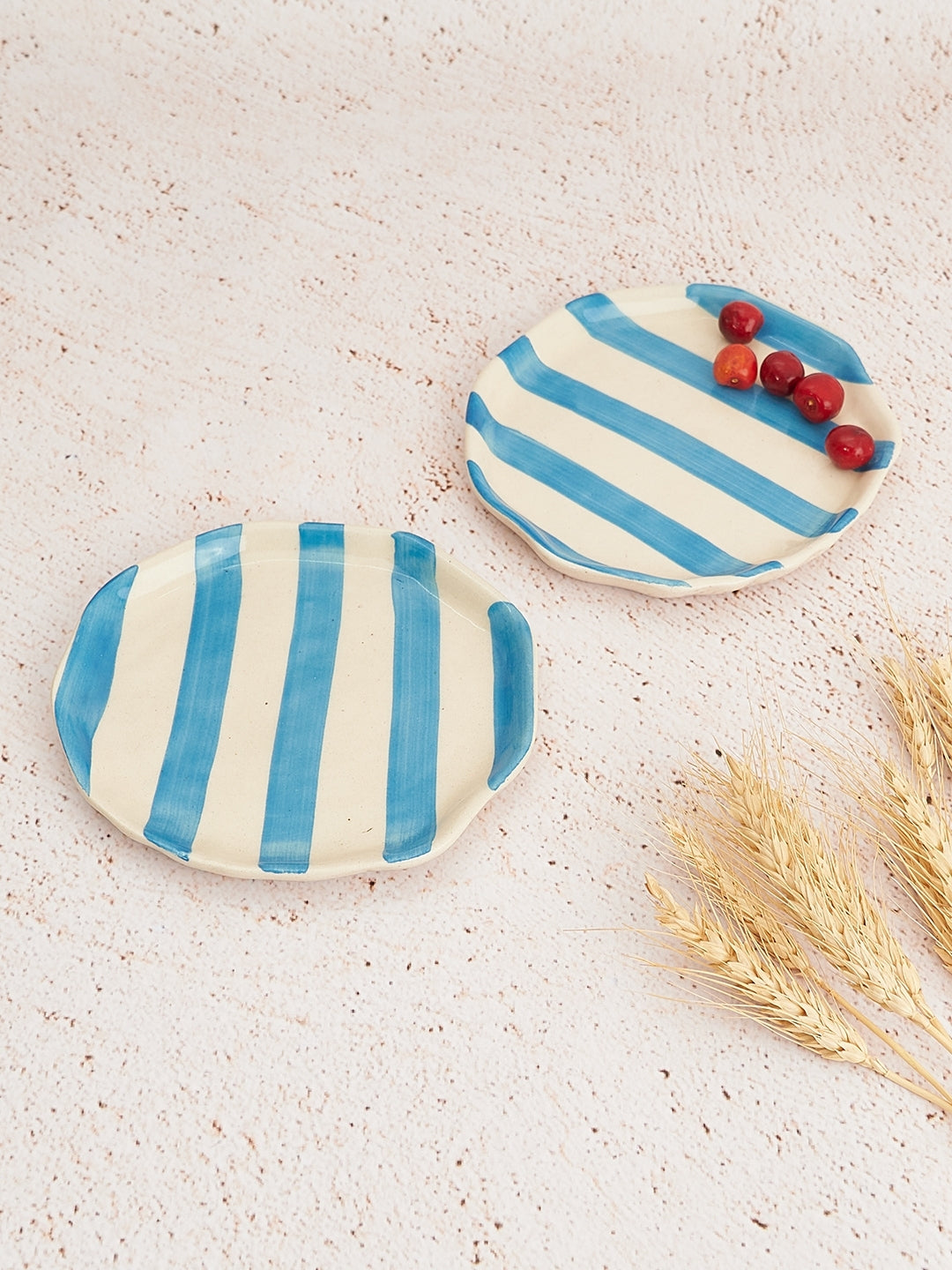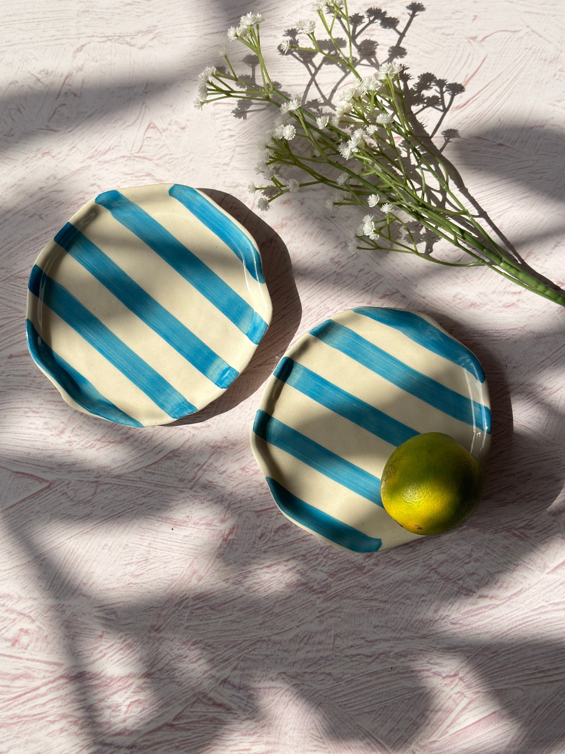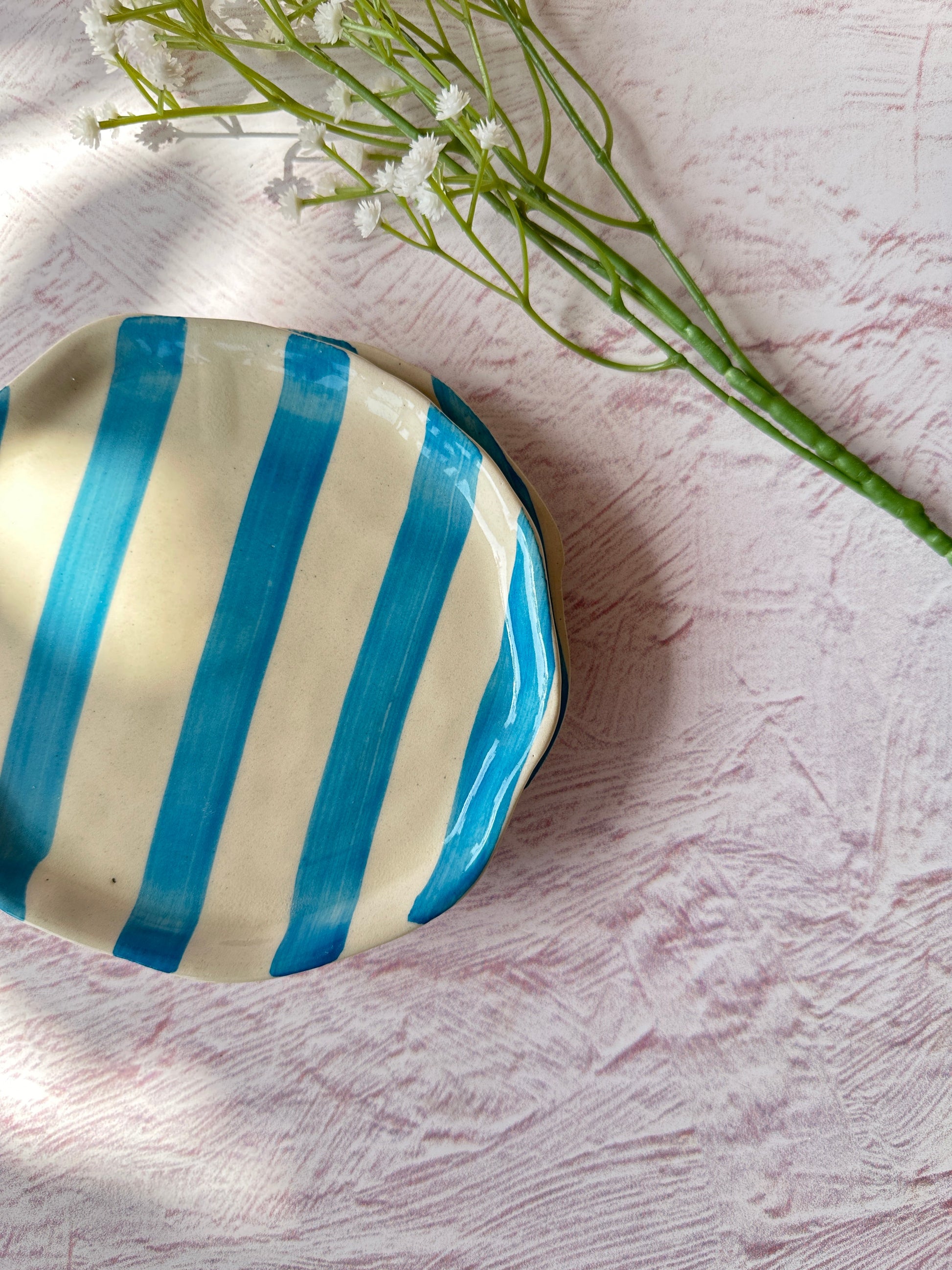 Ceramic Aqua stripe plate, 6.3x6.3 Inches (Set of 4)