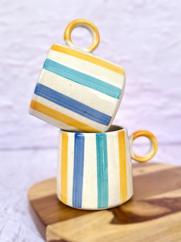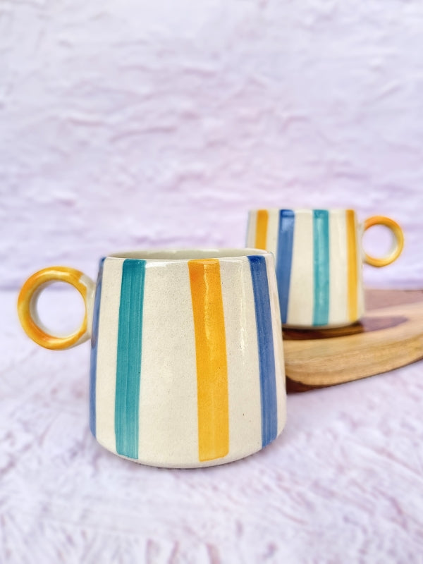 Ceramic Bright Striped Coffee Mug- 450ml (SET OF 4)