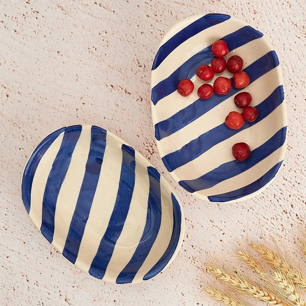 Ceramic stripe Bowl, Blue 7x5x2 Inches