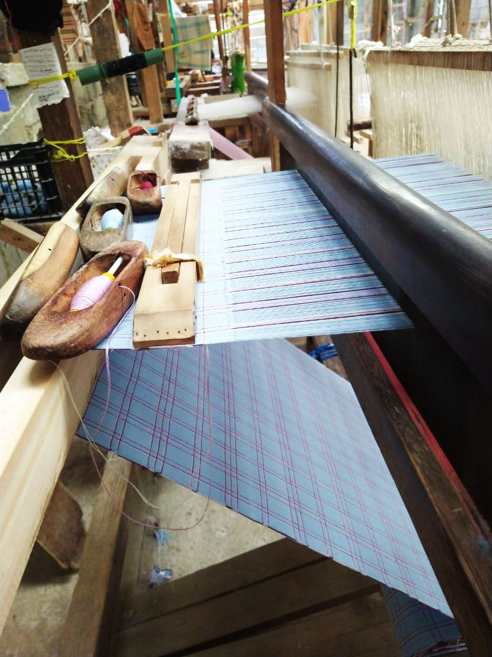Light blue plaid throw pillow, ethically handwoven by artisans in Chiapas, Mexico on traditional footlooms. With hints of burgundy and lilac, this update on a classic plaid will be a lively addition to any decor.