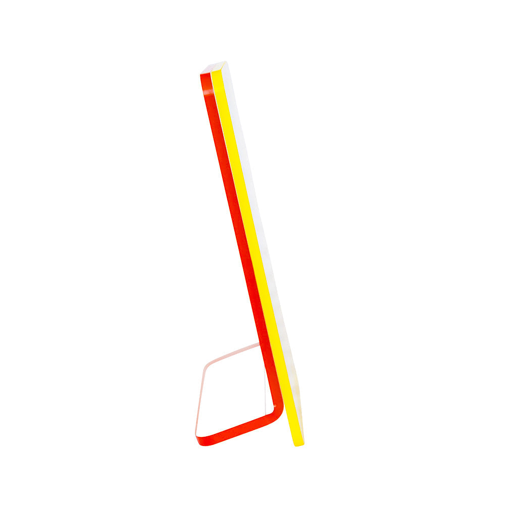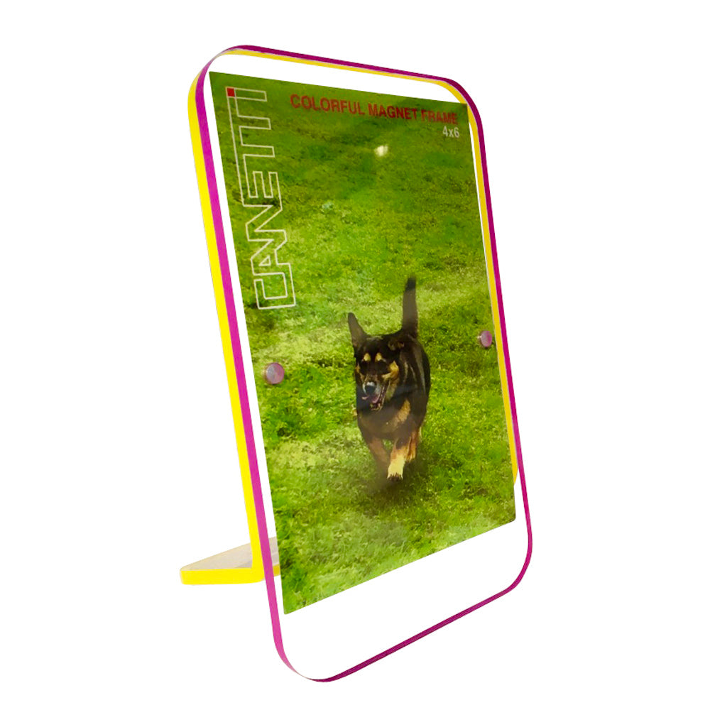 The Colorful Magnet Frame is comprised of two thin crystal clear acrylic panels, each one edged in a different bright color.
