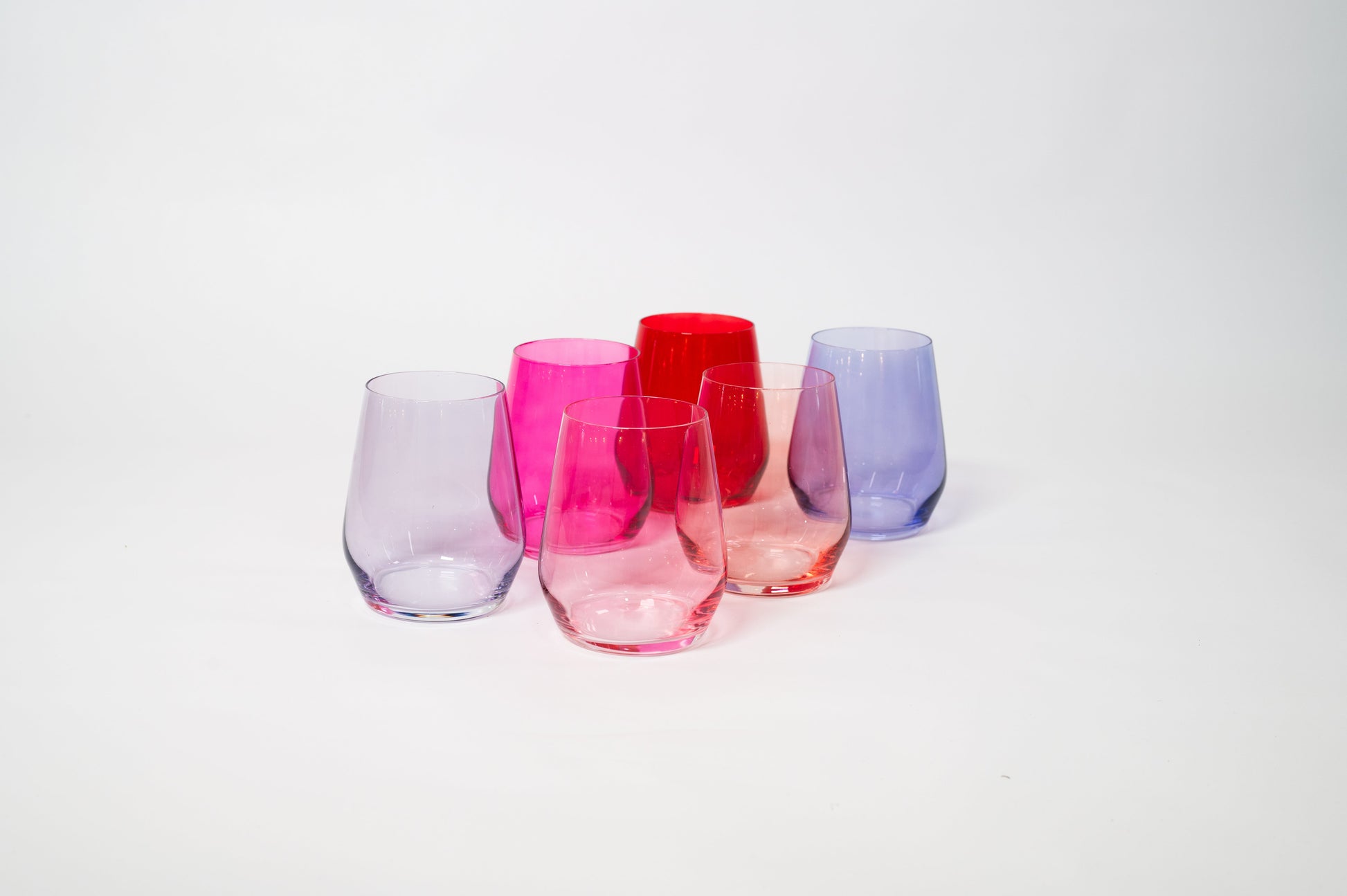 This Cotton Candy Ombré set of 6 glasses includes 1 of each color: