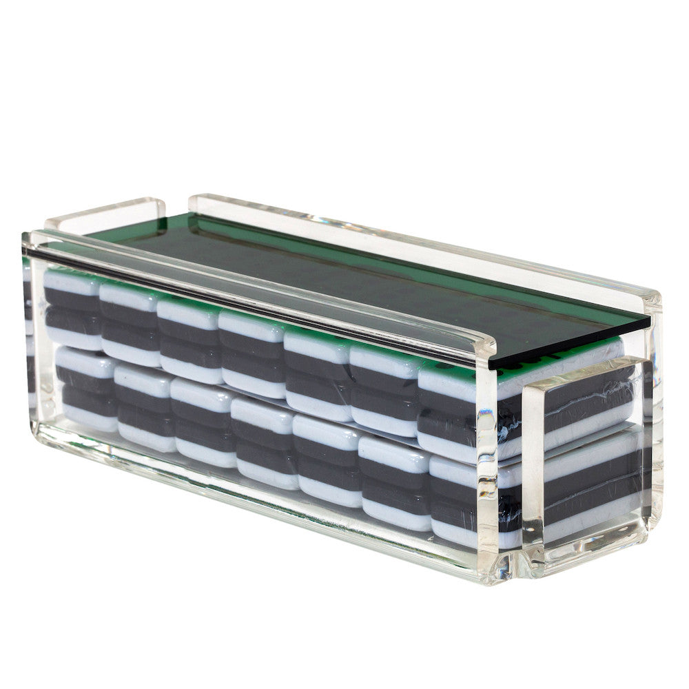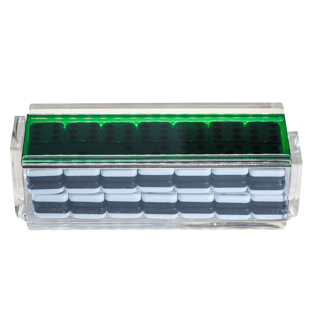 "El Tigre" is a modern domino set. The Green version is a deep dark transparent green that gives the box an elegant look.