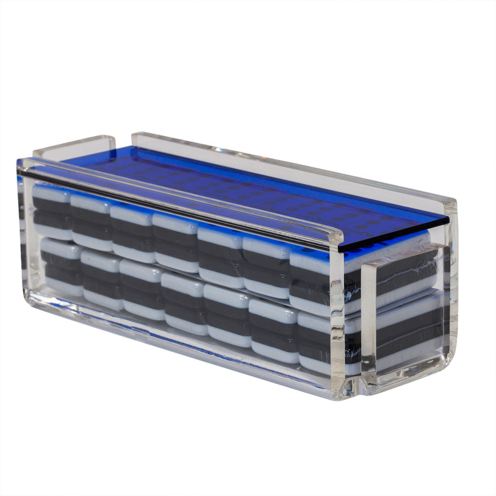 "El Tigre" is a modern domino set with double 6 tiles. These domino sets are meant to be displayed and played, that's why they all come with Jumbo Tournament Size Two-tone Black and White Dominoes with Spinners.