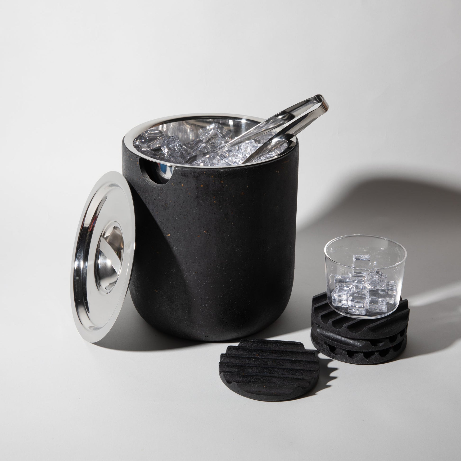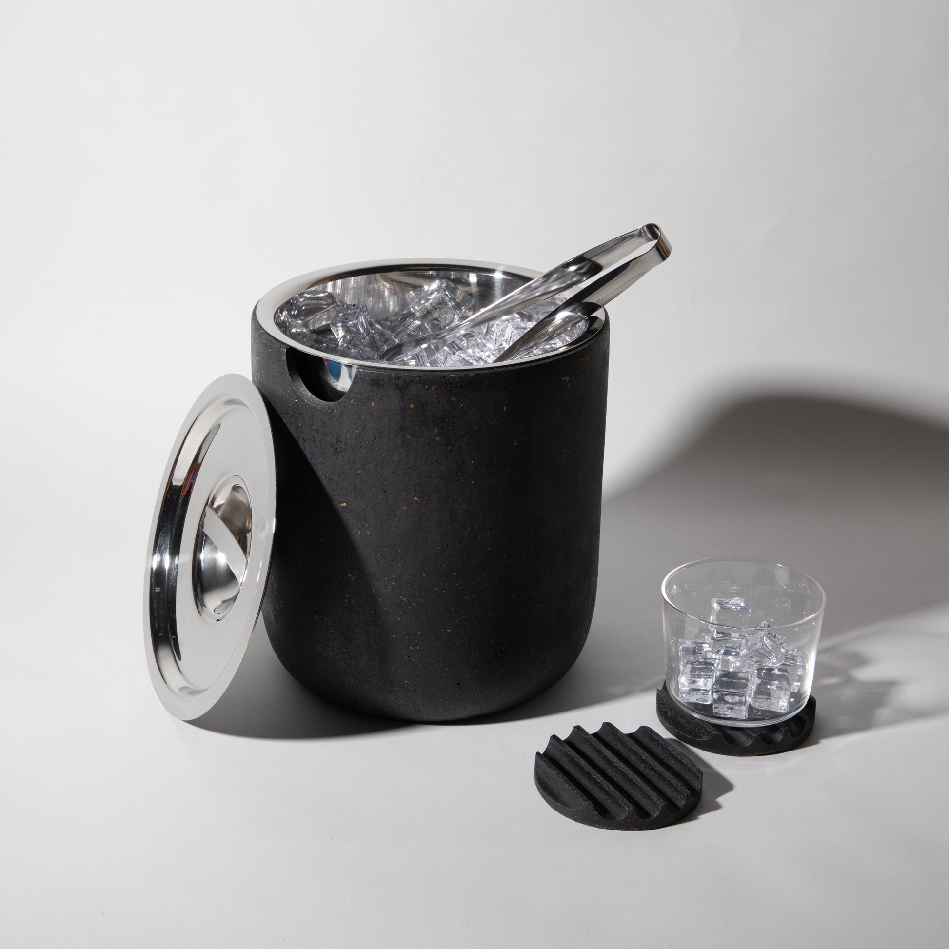Comes with a removable stainless steel insert & lid for the ice. Pairs nicely with our Ice Bucket Tray. Tongs sold separately.
