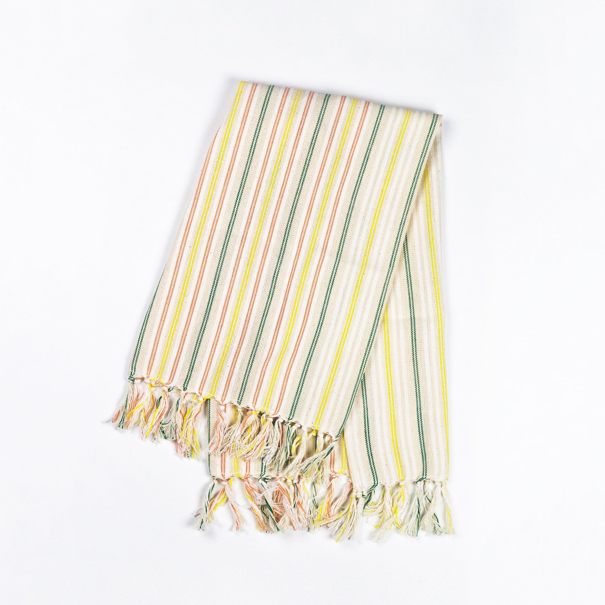 The Inez pink striped towel will be a lively addition of color and texture to your kitchen or bathroom. Stripes of lemon, green, and orange are woven together to create this citrusy colorful textile. Ethically handwoven by artisans in Xela, Guatemala.