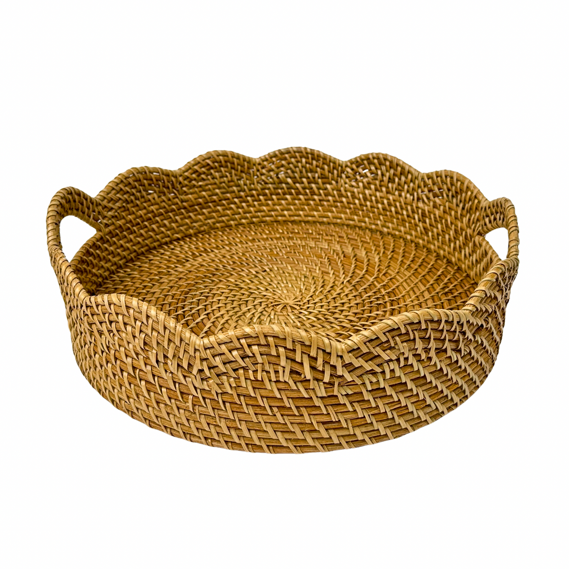 Lily Round Scalloped Rattan Serving Tray