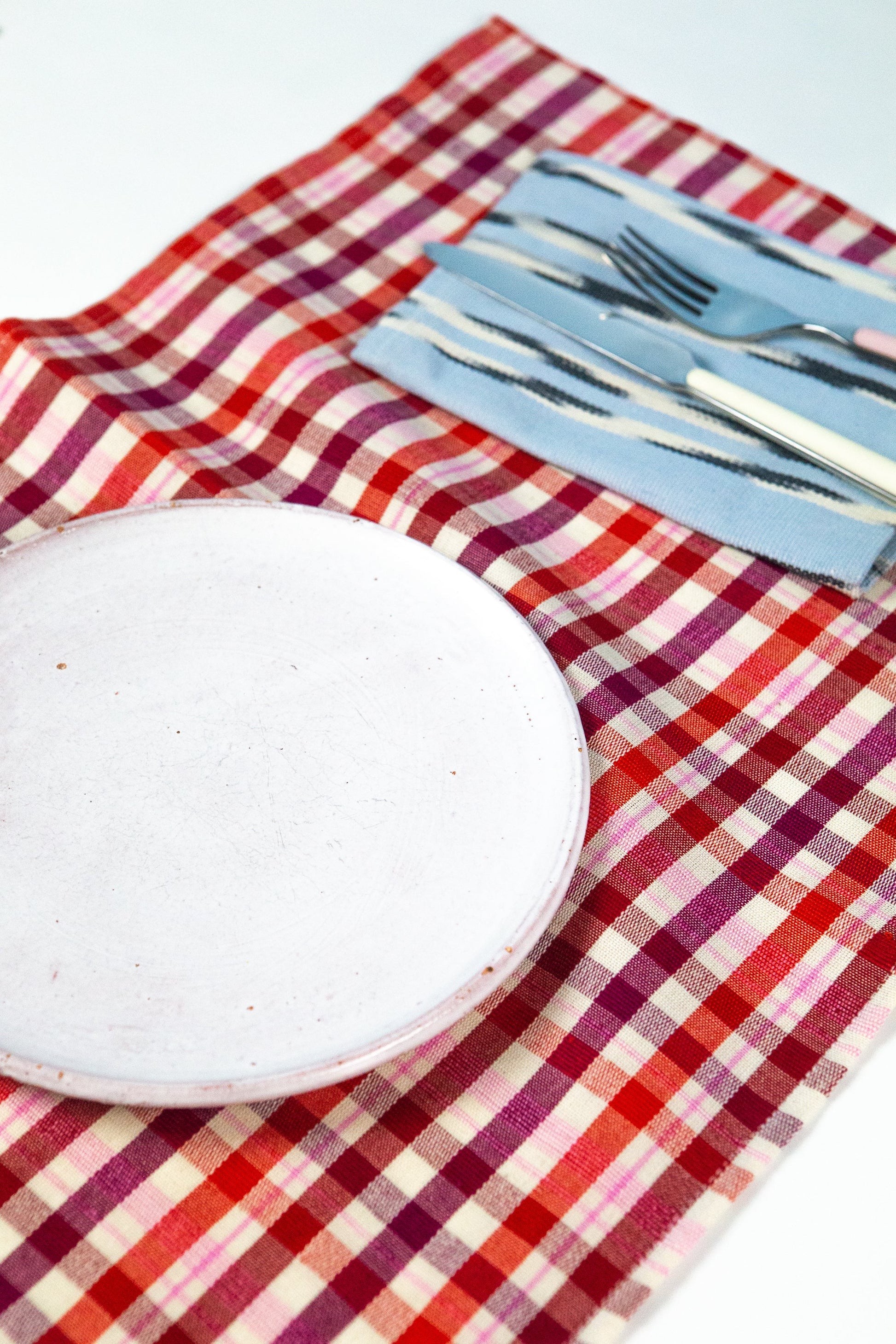 Our Noel plaid placemats are the perfect accent to add vibrant color and texture to any table setting. Stripes of red currant, cranberry and light pink are woven together to create this seasonal and timeless piece. Ethically handwoven by artisans in Xela, Guatemala.