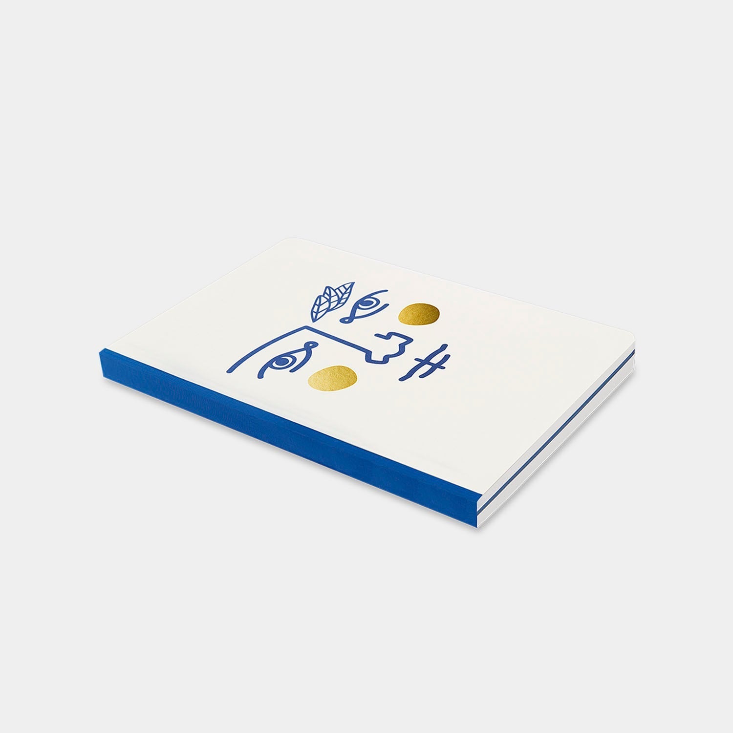 These notebooks focus on quality and writer’s comfort. Lay flat binding allows to open the notebook without forcing the spine. The sturdy cover, luxuriously stamped in gold, is great for sketching even when there isn’t a table available. A middle section of blue pages allow for easy navigation, while plain pages offer the perfect space to be creative.