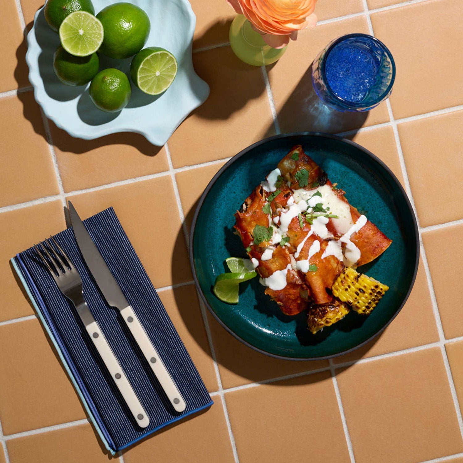 Get ready to ride the waves with these Ocean Mist ticking cotton napkins. These linens are a durable rich blue twill with hues of aqua, sea green and vivid blues wrapped around all edges to replicate the rise and fall of the ocean tide.