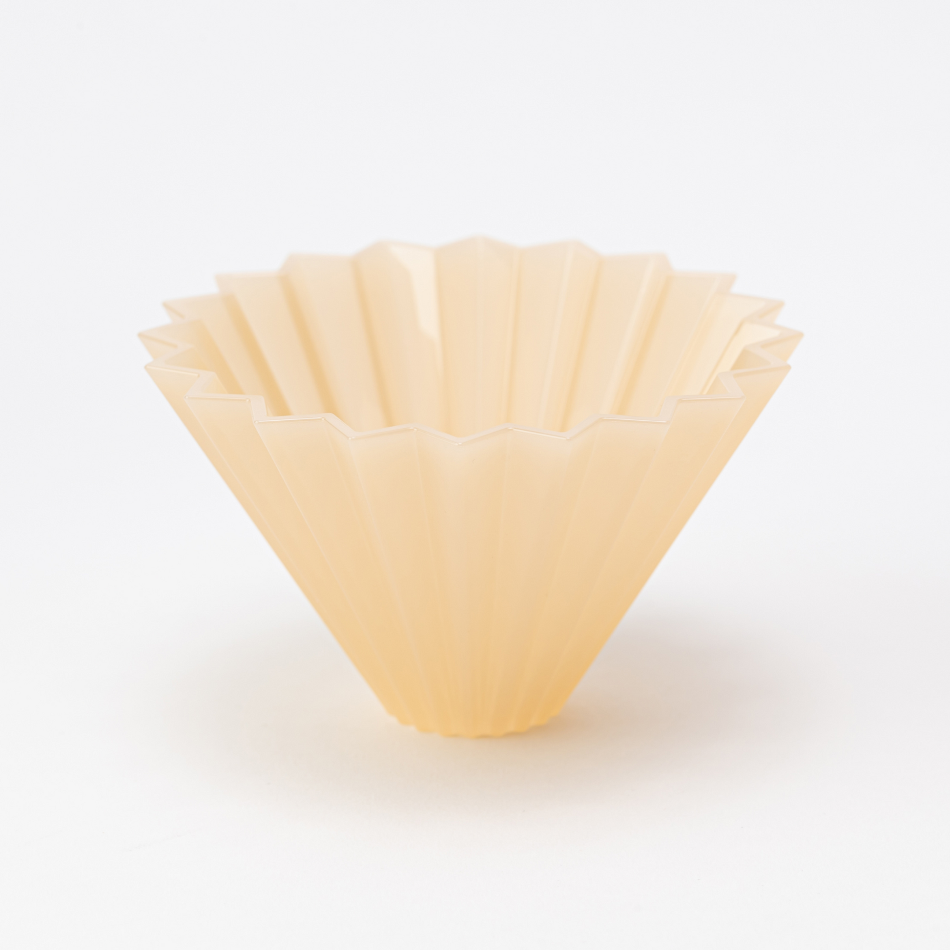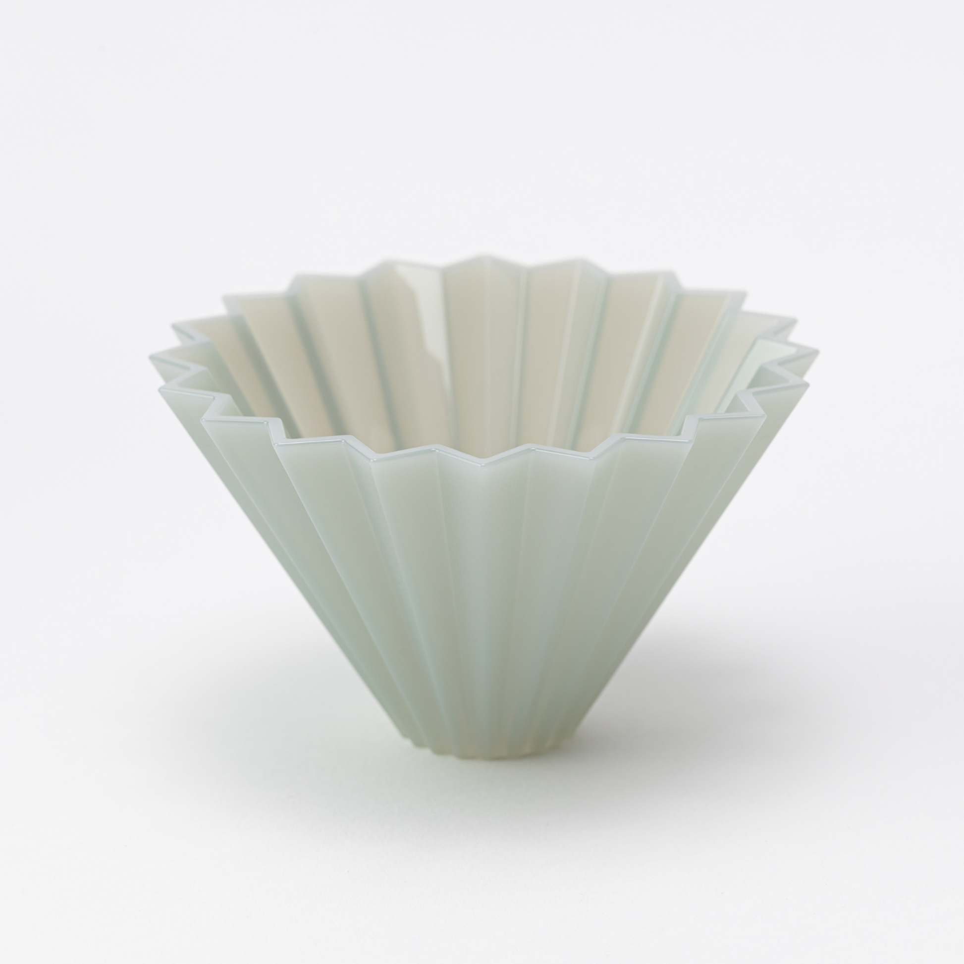 ORIGAMI Dripper AIR is very light, transportable and made of AS resin, which is a material strong against impact and heat. The shape is the same as porcelain ORIGAMI dripper and it is light, hard to break and easy to carry. Additionally, the plastic dripper makes it easy to maintain the temperature while brewing. It is a good entry model.