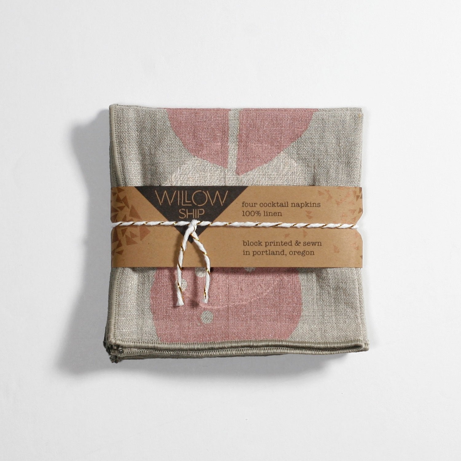 The handcrafted art of block-printing is on display in our 'Pods' cocktail napkins sets. The beautiful interplay of transparent, overprinted colors brings a wabi-sabi feel to cocktail time.