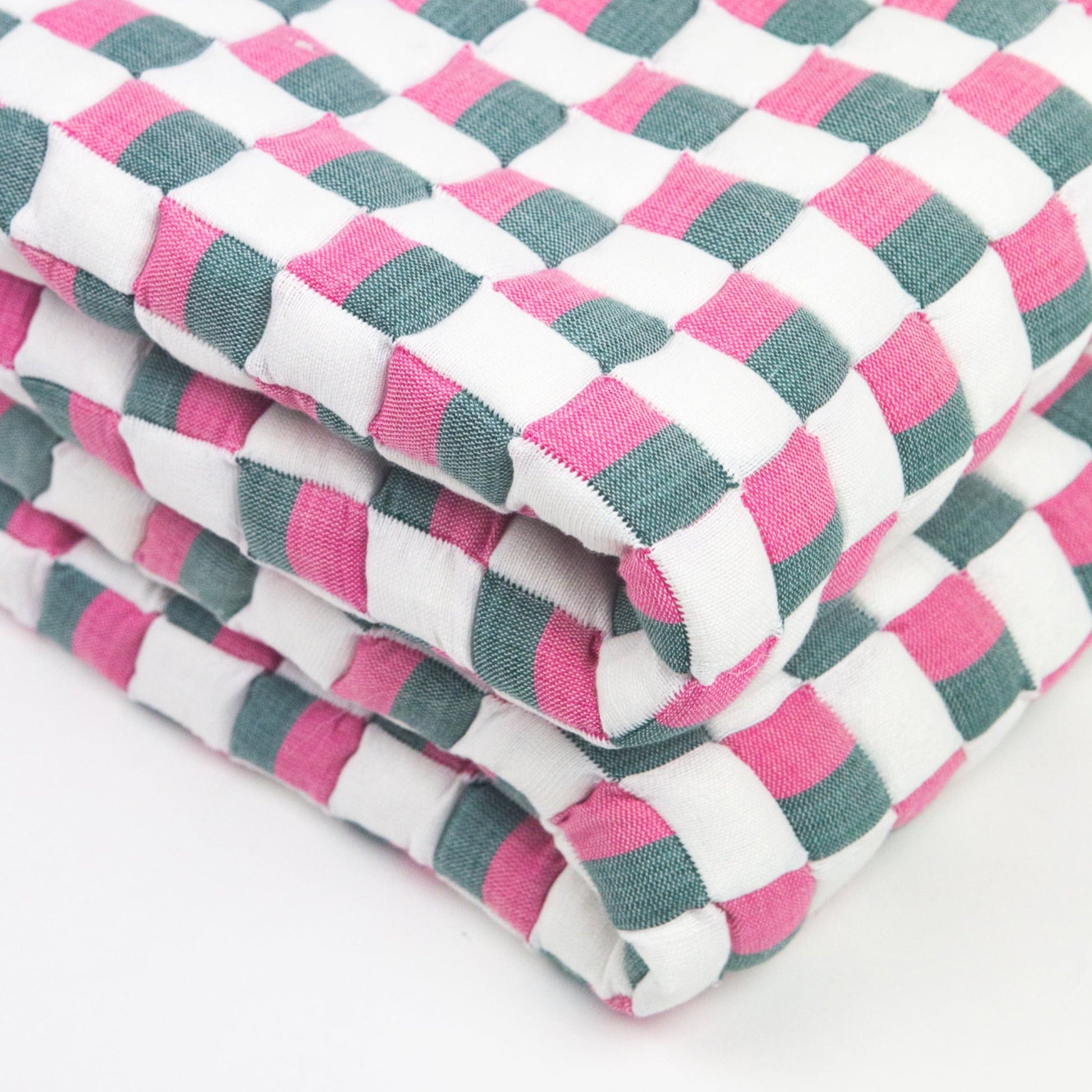 Quilted Sujani Throw Blanket - Pink, Green and White