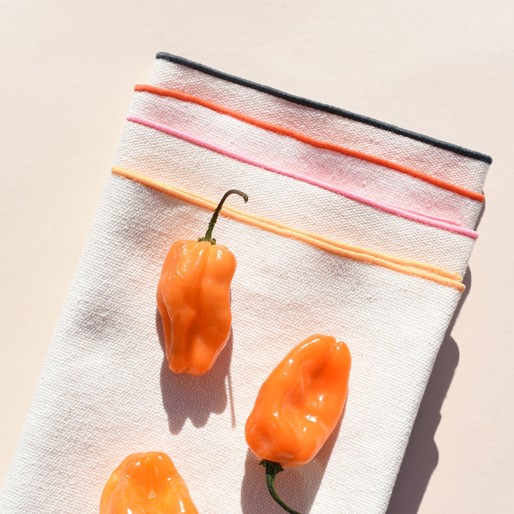 Somewhere, over the burlap rainbow. That's where you'll find us. Our signature cream linens get a colorful treatment and we couldn't be more excited about it.