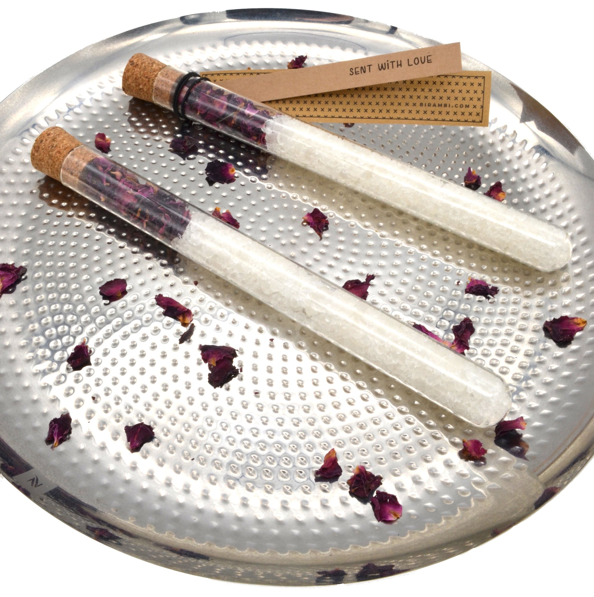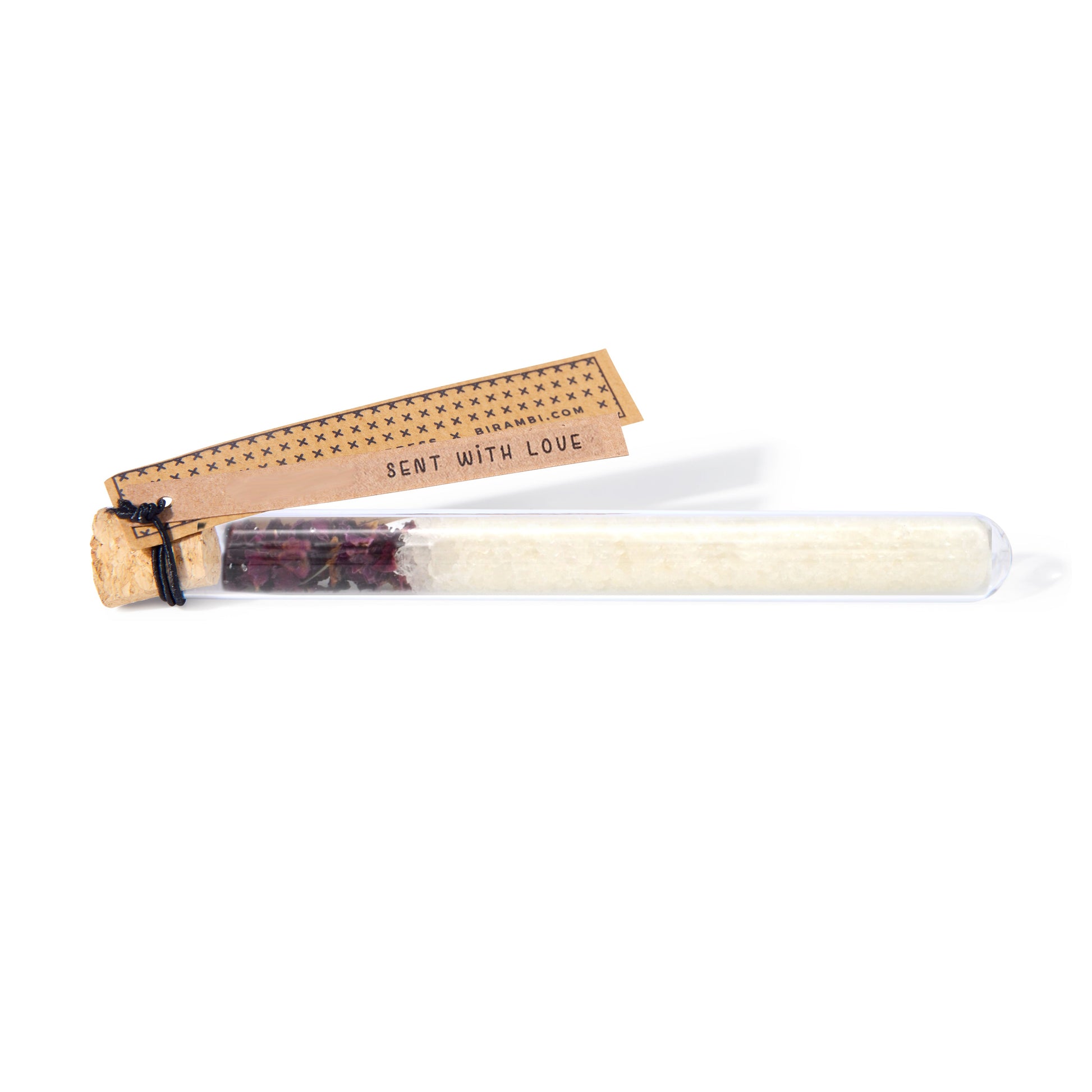 This luxurious bath salt bottle from Birambi is a perfect self-care reminder for you or a loved one. Uncork and pour into a warm bath, swirl and enjoy. Let the water warm your body and relax your muscles as the salt soothes your skin and the subtle rose fragrance fills the air.