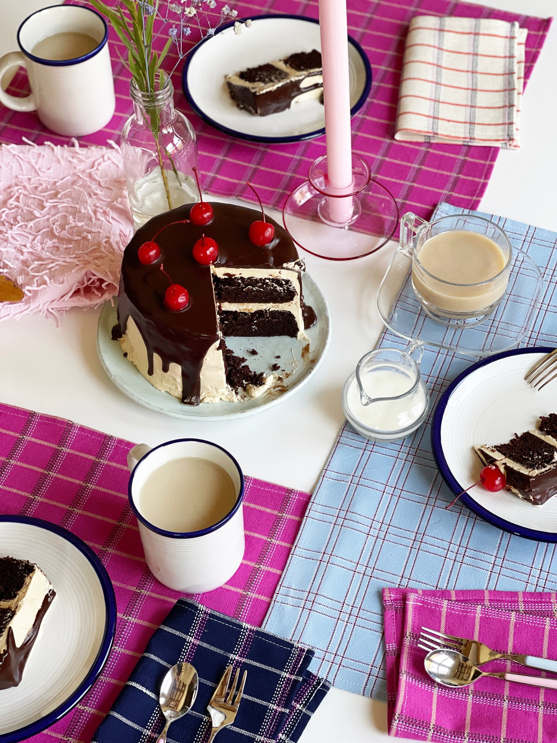 San lucas pink plaid placemat, ethically handwoven by artisans in Chiapas, Mexico on traditional footlooms. With hints of navy and beige this updated classic plaid will be a lively addition to any table setting or dinner party. Sold individually, or enjoy our discount on a set of 4.