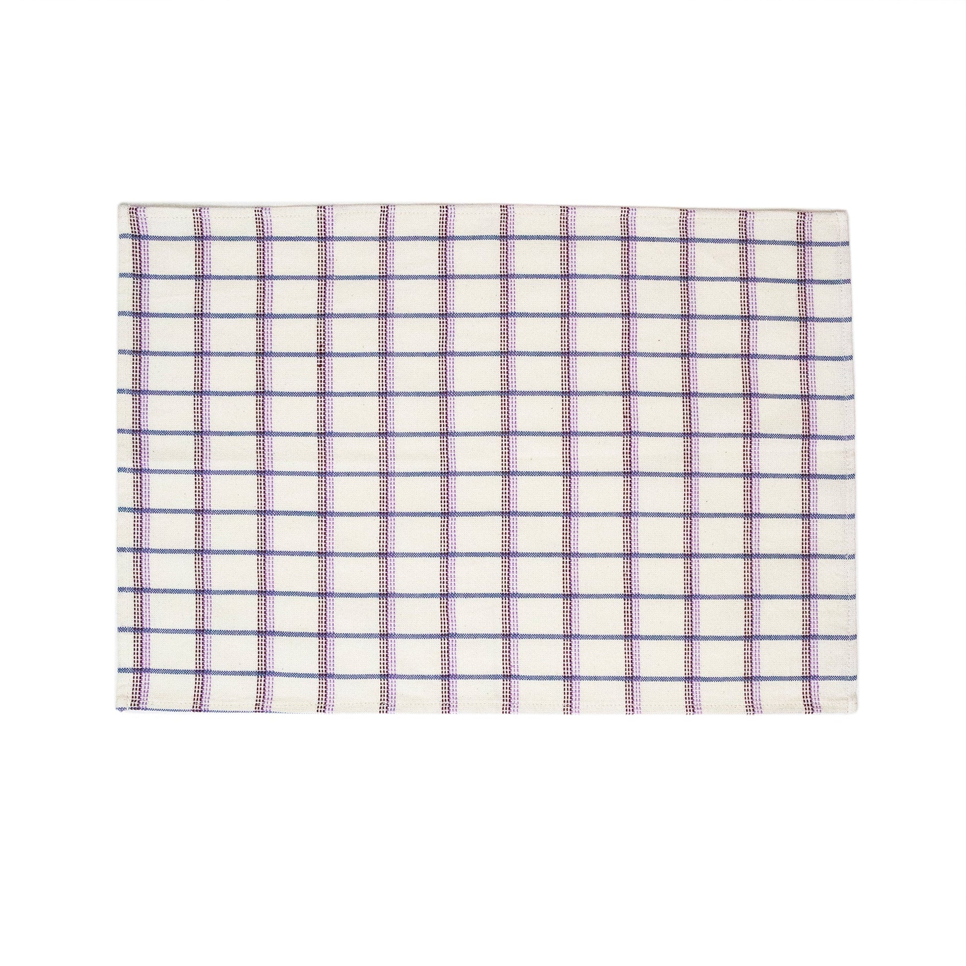White plaid placemat, ethically handwoven by artisans in Chiapas, Mexico on traditional footlooms. With hints of burgundy, blue and lilac, this updated classic plaid will be a lively addition to any table setting or dinner party. Sold individually, or enjoy our discount on a set of 4.