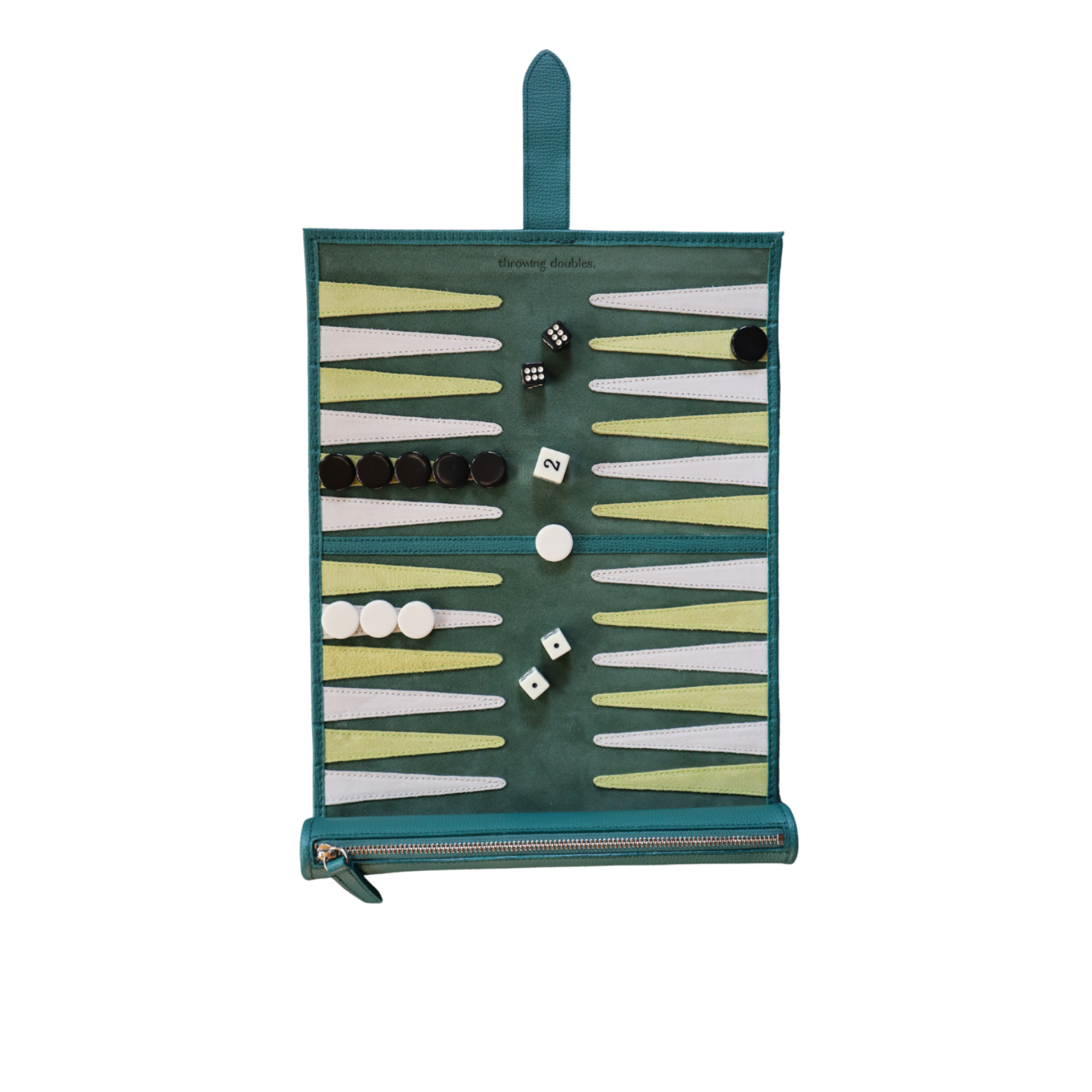 Handmade in Los Angeles, this luxe teal travel backgammon set is a perfect addition to any globetrotter’s hand luggage. The set features a leather base with a green, white and yellow suede playing field. Ideal for the traveller who can’t resist a game on the go.