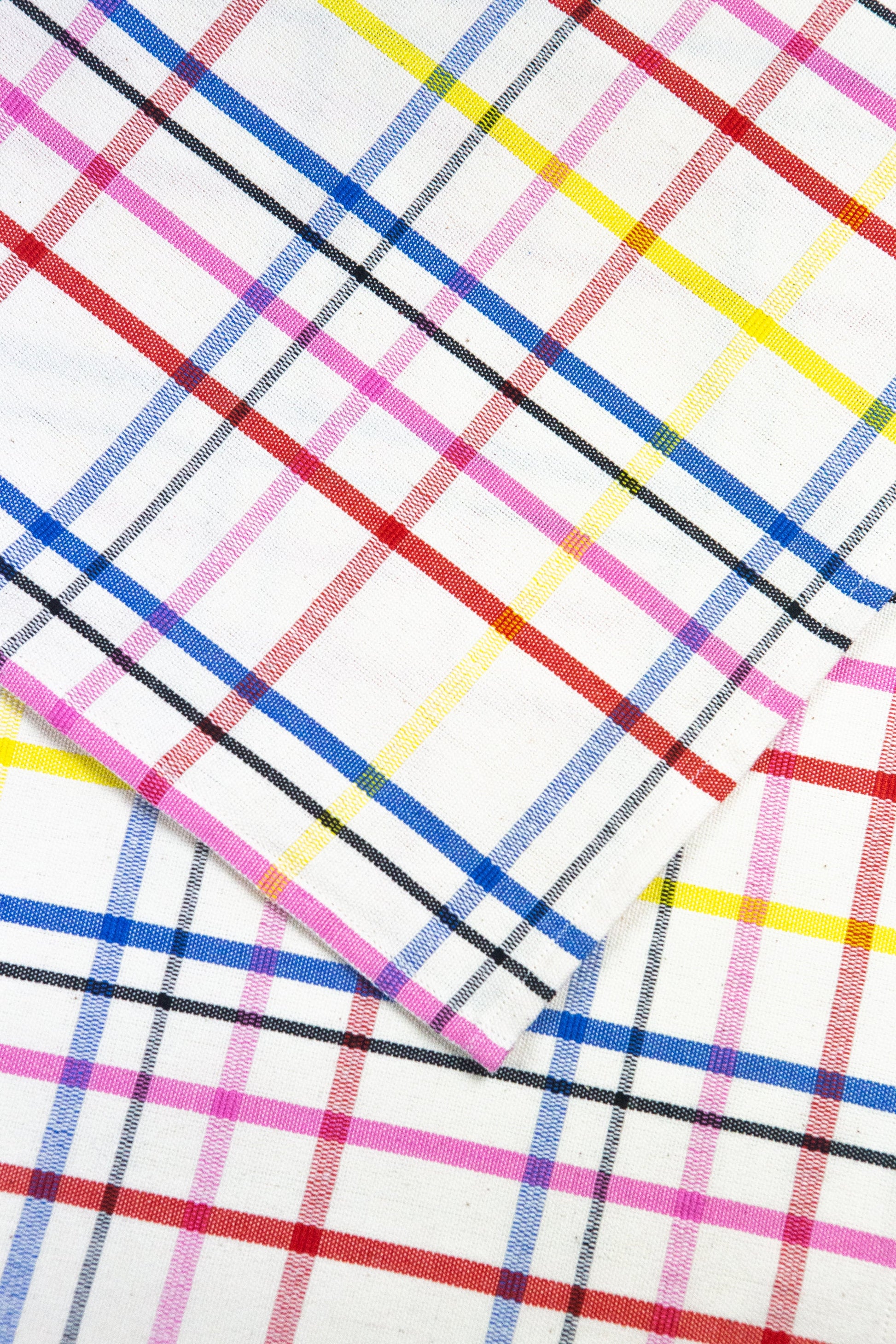 Our Vera plaid placemats will be a lively addition of color and texture to your kitchen or bathroom. Bubblegum pink, royal blue, Red and yellow are woven together to create this brilliantly colorful plaid. Ethically handwoven by artisans in Xela, Guatemala.