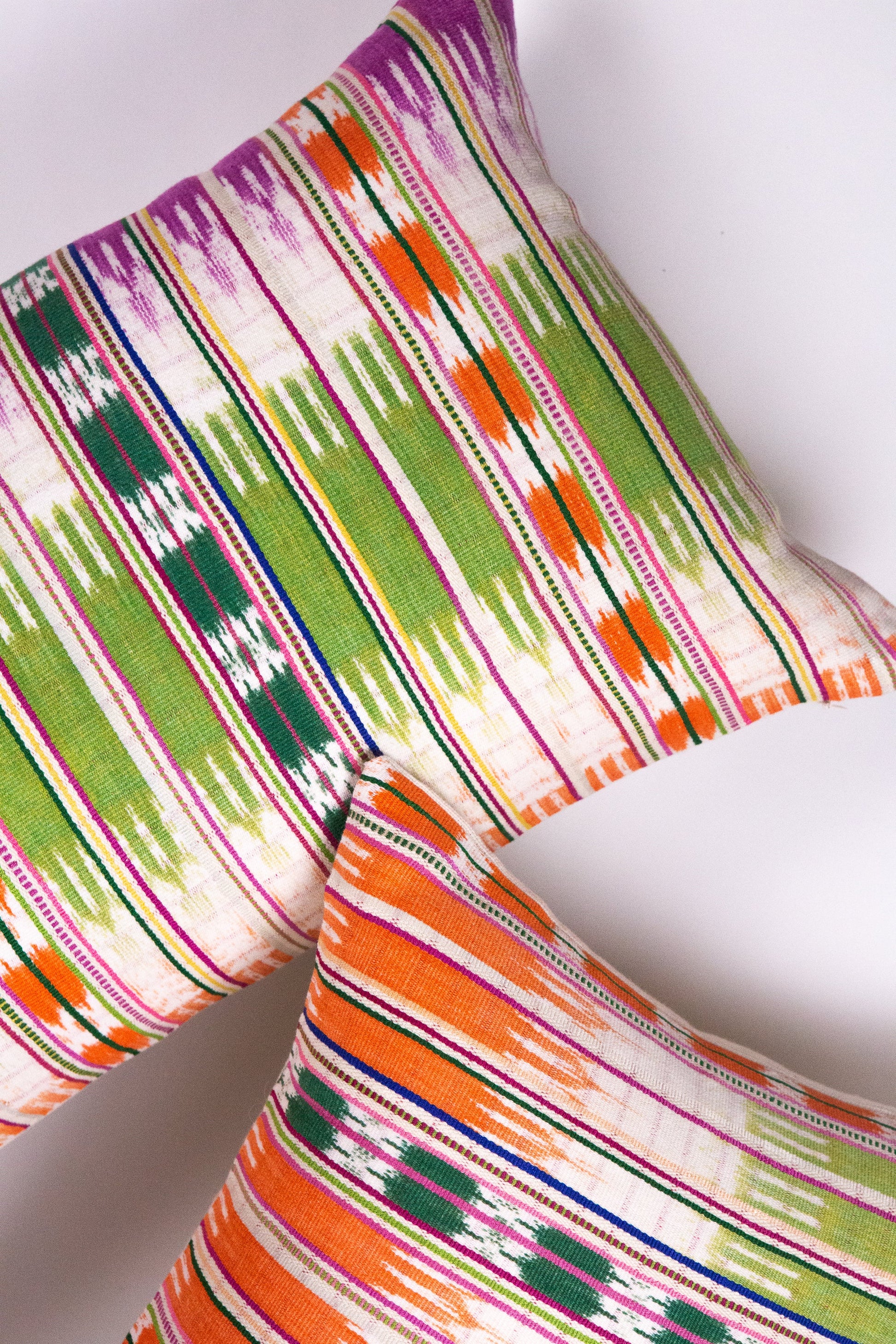 This vintage Guatemalan textile was originally a traditional skirt fabric. It is made from hand-dyed ikat